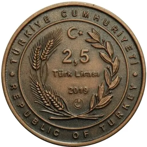 TÜRKİYE CUMHURİYETİ 2,5 Türk Lirası 2019 REPUBLIC OF TURKEY (Translation: Republic of Turkey 2.5 Turkish Lira 2019 Republic of Turkey) |