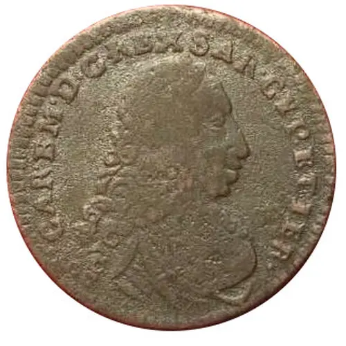 | Obverse lettering | CAR. EM. D. G. REX SAR. CYP ET. IER |