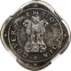Obverse description Ashoka Lion Capitol within circle. Stars on outside on four corners.