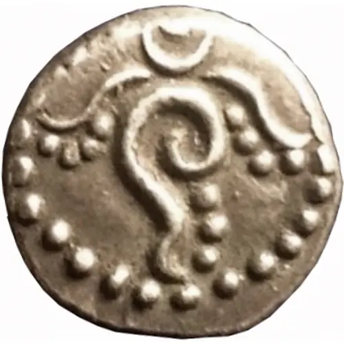 | Obverse description | Garlanded stylized shanku (conch shell), crescent above. All within a circle of dots |