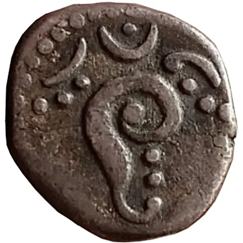 | Obverse description | Garlanded stylized shanku (conch shell), crescent above. All within a circle of dots |