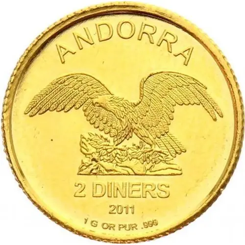 | Obverse lettering | ANDORRA 2 DINERS 2011 1 G OR PUR .999 (Translation: Andorra 1 Gram Fine Gold .999) |