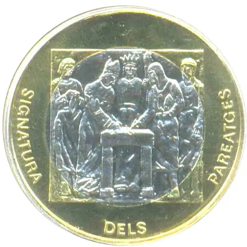 | Leyenda del reverso | SIGNATURA DELS PAREATGES (Translation: Signing of the Paréages) |