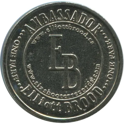 | Legenda awersu | AMBASSADOR www.elliottbrood.ca EB www.sixshooterrecords.com ONE FARE Elliott BROOD ONE FARE |