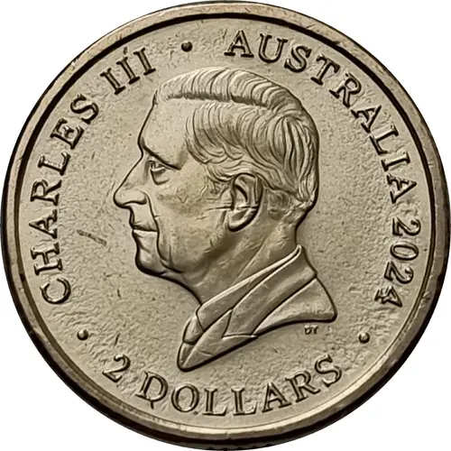 | Obverse lettering | CHARLES III AUSTRALIA 2024 2 DOLLARS DT |
