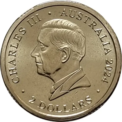 | Obverse lettering | CHARLES III AUSTRALIA 2024 2 DOLLARS DT |