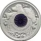 A purple poppy centre surrounded by a Cat, Dog, Horse & Doves. All set above Australian Flora. |