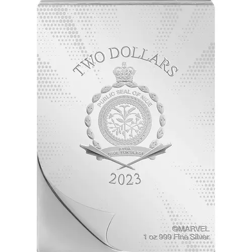 | Legenda do anverso | TWO DOLLARS PUBLIC SEAL OF NIUE ATUA NIUE TUKULAGI 2023 ©MARVEL 1 oz 999 Fine Silver |