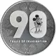 Some reeding forming the silhouette of a sunburst with the number 90 in big bold characters, with an engraving of Mickey Mouse inside the `0` of the number 90 |