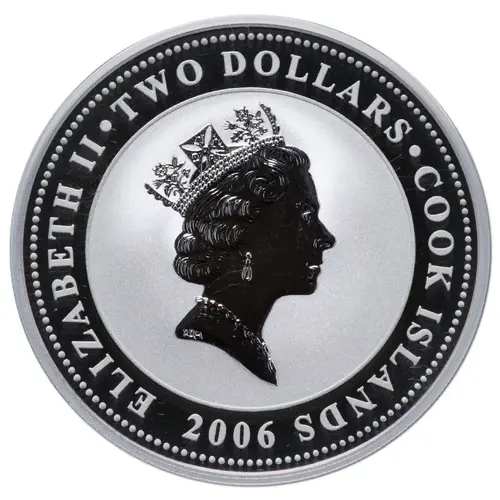 | Obverse lettering | ELIZABETH II · TWO DOLLARS · COOK ISLANDS RDM 2006 |