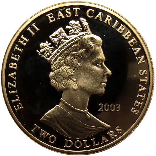 | Opis líce | ELIZABETH II EAST CARIBBEAN STATES 2003 RDM TWO DOLLARS |