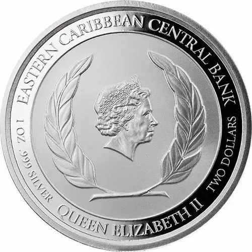 | 正面铭文 | EASTERN CARIBBEAN CENTRAL BANK 1 OZ .999 SILVER QUEEN ELIZABETH II TWO DOLLARS |