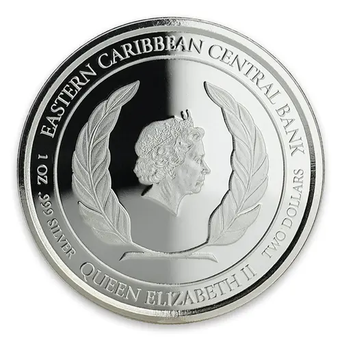 EASTERN CARIBBEAN CENTRAL BANK 1 OZ .999 SILVER TWO DOLLARS QUEEN ELIZABETH II |