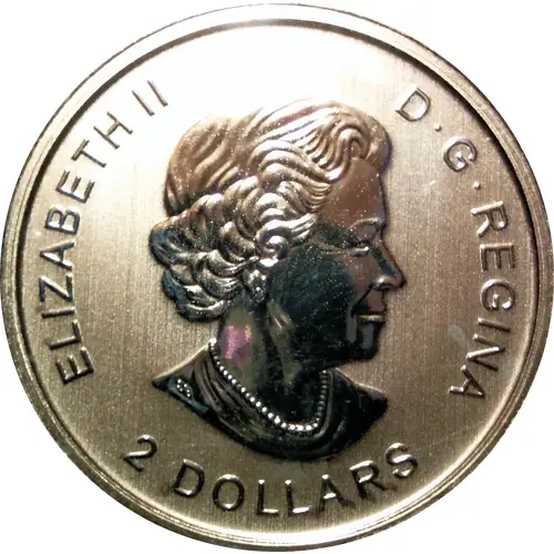 | Obverse lettering | ELIZABETH II D•G•REGINA 2 DOLLARS (Translation: Elizabeth II Queen by the grace of God) |