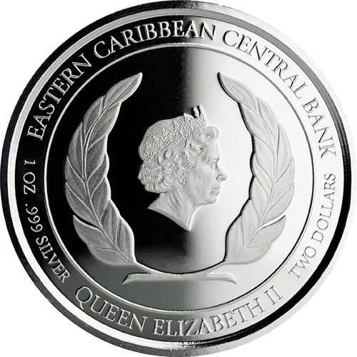 EASTERN CARIBBEAN CENTRAL BANK 1 OZ .999 SILVER TWO DOLLARS QUEEN ELIZABETH II |