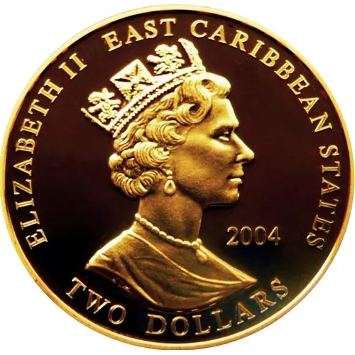 | Obverse lettering | ELIZABETH II EAST CARIBBEAN STATES 2004 RDM TWO DOLLARS |
