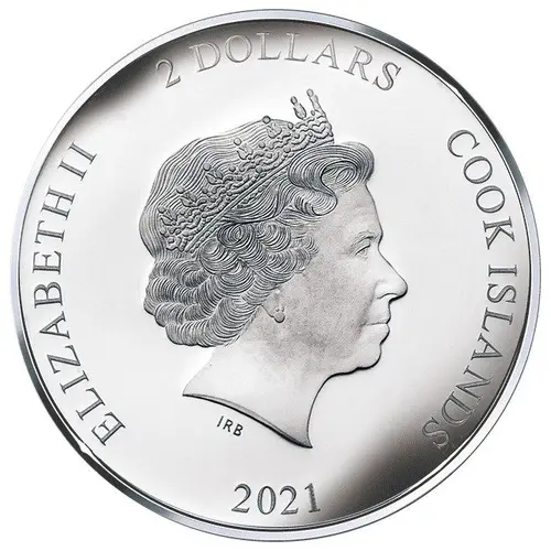 | Obverse lettering | ELIZABETH II 2 DOLLARS COOK ISLANDS IRB 2021 |