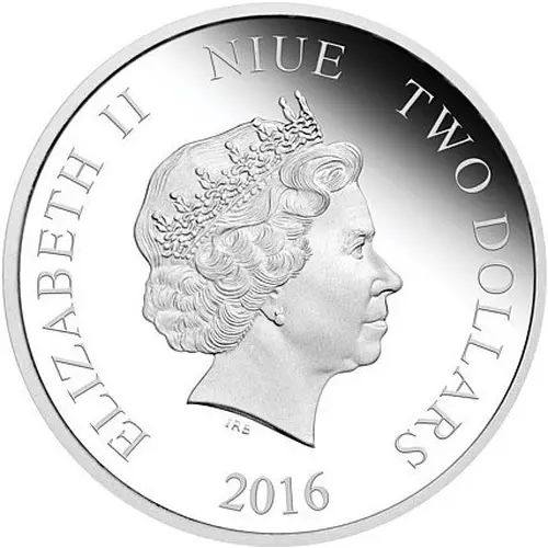 | Obverse lettering | ELIZABETH II NIUE TWO DOLLARS IRB 2016 |