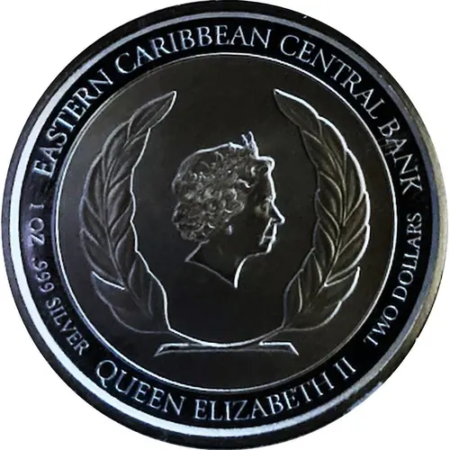 EASTERN CARIBBEAN CENTRAL BANK 1 OZ .999 SILVER TWO DOLLARS QUEEN ELIZABETH II |