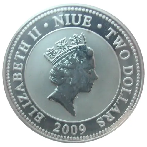 | Obverse lettering | ELIZABETH II · NIUE · TWO DOLLARS RDM 2009 |