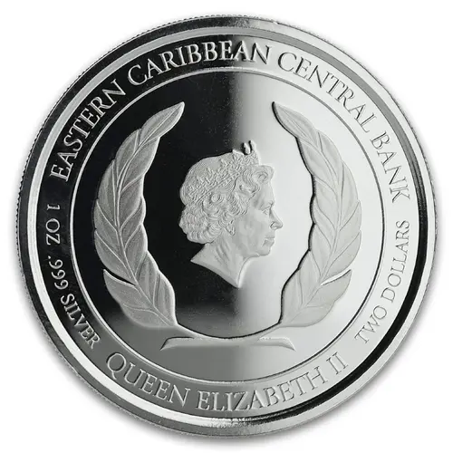 | 正面铭文 | EASTERN CARIBBEAN CENTRAL BANK 1 OZ .999 SILVER QUEEN ELIZABETH II TWO DOLLARS |