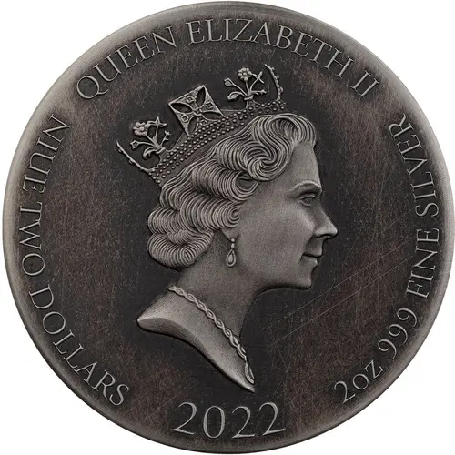 | Obverse lettering | QUEEN ELIZABETH II NIUE TWO DOLLARS 2022 2oz 999 FINE SILVER |