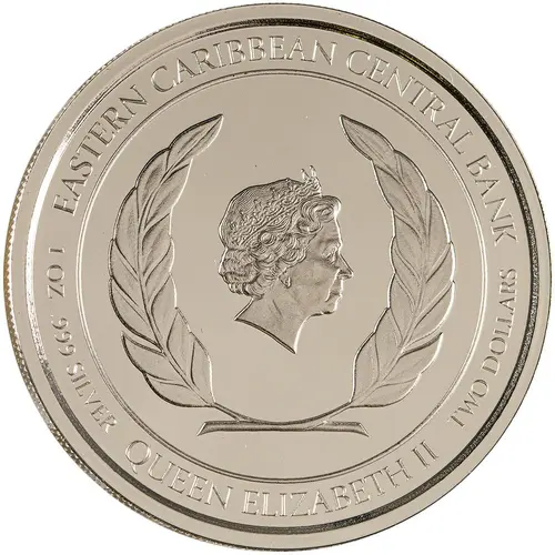 | 正面铭文 | EASTERN CARIBBEAN CENTRAL BANK 1 OZ .999 SILVER QUEEN ELIZABETH II TWO DOLLARS |