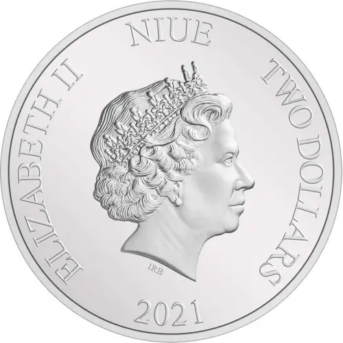 | Obverse lettering | ELIZABETH II NIUE TWO DOLLARS IRB 2021 |