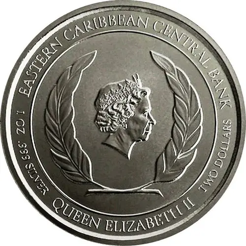 EASTERN CARIBBEAN CENTRAL BANK 1 OZ .999 SILVER TWO DOLLARS QUEEN ELIZABETH II |