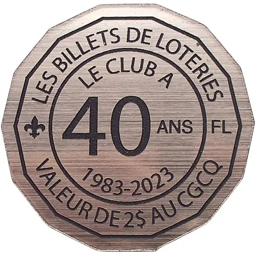 | Opis líce | LES BILLETS DE LOTERIE LE CLUB A ⚜ 40 ANS FL 1983-2023 VALEUR DE 2$ AU CGCQ |