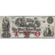 | Obverse description | Left vignette features three ladies. At top center are two cherubs, one holding and the other standing on a 1854 Seated Liberty dollar coin with a train running in the background. Lower right vignette depicts a woman churning butter. Red “TWO” overprint. |
