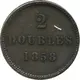 | Reverse lettering | 2 DOUBLES 1858 |
