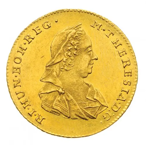M THERESIA D G / R I HUN BOH REG (Translation: Maria Theresia Dei gratia Romanorum imperatrix, Hungariae, Bohemiae regina) |