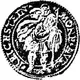 | Reverse description | Saint Christopher holding infant Jesus on right shoulder and staff in left hand, lettering around. |