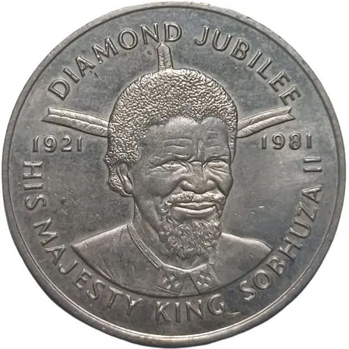 | Obverse lettering | DIAMOND JUBILEE HIS MAJESTY KING SOBHUZA II |