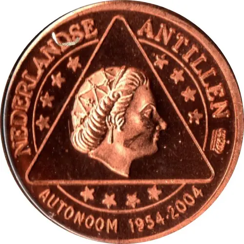 | Obverse lettering | NEDERLANDSE ANTILLEN AUTONOOM 1954-2004 (Translation: NETHERLANDS ANTILLES AUTONOMOUS 1954-2004) |