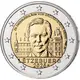 | Reverse description | A geographical map of Western Europe spans the outer ring and inner core on the right side of the coin. The inscription 2 EURO is superimposed over the map of Europe, with the numeral “2” located in an open field representing the eastern Atlantic Ocean. 12 stars are located on the right side of the outer ring, with six stars atop the map of Europe and six stars below it; six vertical stripes cut across the inner core of the coin, visually connecting the upper and lower star segments. |