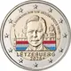 Portrait of Grand Duke Henri of Luxembourg in front of the Grand Ducal Palace. The text `25. TROUNJUBILÄUM VUM GROUSSHERZOG HENRI` is inscribed in a semicircle at the top of the design. The name of the country `LËTZEBUERG`, the engraver`s initials `MF` and the date `2025` appear below the effigy of Grand Duke Henri. At the bottom of the castle, the Luxembourg flag in color. The outer ring of the coin represents the twelve stars of the European flag. |