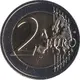 A geographical map of Western Europe spans the outer ring and inner core on the right side of the coin. The inscription 2 EURO is superimposed over the map of Europe, with the numeral “2” located in an open field representing the eastern Atlantic Ocean. 12 stars are located on the right side of the outer ring, with six stars atop the map of Europe and six stars below it; six vertical stripes cut across the inner core of the coin, visually connecting the upper and lower star segments. |