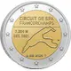 | Beschrijving voorzijde | Line drawing of the current circuit, surmounted by the inscription `CIRCUIT DE SPA FRANCORCHAMPS`. On the left are the length (7.004 M) and the date of creation of the circuit (1921). At the very bottom, we find the mark (an Erlenmeyer flask with an aster), followed by the inscription `BE` (for BELGIUM), the year 2025 and the mint mark (a Mercury rod). The outer ring of the coin is decorated with the twelve stars of the European flag. |