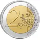 | Beschrijving keerzijde | A geographical map of Western Europe spans the outer ring and inner core on the right side of the coin. The inscription 2 EURO is superimposed over the map of Europe, with the numeral “2” located in an open field representing the eastern Atlantic Ocean. 12 stars are located on the right side of the outer ring, with six stars atop the map of Europe and six stars below it; six vertical stripes cut across the inner core of the coin, visually connecting the upper and lower star segments. |