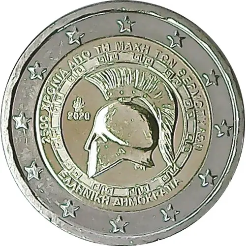| Obverse lettering | 2500 ΧΡΟΝΙΑ ΑΠΟ ΤΗ ΜΑΧΗ ΤΩΝ ΘΕΡΜΟΠΥΛΩΝ 2020 ΕΛΛΗΝΙΚΗ ΔΗΜΟΚΡΑΤΙΑ (Translation: 2500 YEARS FROM THE BATTLE OF THERMOPYLAE 2020 HELLENIC REPUBLIC) |
