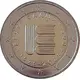 | Descrição do reverso | A geographical map of Western Europe spans the outer ring and inner core on the right side of the coin. The inscription 2 EURO is superimposed over the map of Europe, with the numeral “2” located in an open field representing the eastern Atlantic Ocean. 12 stars are located on the right side of the outer ring, with six stars atop the map of Europe and six stars below it; six vertical stripes cut across the inner core of the coin, visually connecting the upper and lower star segments. |
