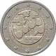 | Mô tả mặt sau | A geographical map of Western Europe spans the outer ring and inner core on the right side of the coin. The inscription 2 EURO is superimposed over the map of Europe, with the numeral “2” located in an open field representing the eastern Atlantic Ocean. 12 stars are located on the right side of the outer ring, with six stars atop the map of Europe and six stars below it; six vertical stripes cut across the inner core of the coin, visually connecting the upper and lower star segments. |