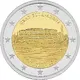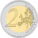 | Reversbeschreibung | A geographical map of Western Europe spans the outer ring and inner core on the right side of the coin. The inscription 2 EURO is superimposed over the map of Europe, with the numeral “2” located in an open field representing the eastern Atlantic Ocean. 12 stars are located on the right side of the outer ring, with six stars atop the map of Europe and six stars below it; six vertical stripes cut across the inner core of the coin, visually connecting the upper and lower star segments. |