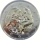 | Reverse description | A geographical map of Western Europe spans the outer ring and inner core on the right side of the coin. The inscription 2 EURO is superimposed over the map of Europe, with the numeral “2” located in an open field representing the eastern Atlantic Ocean. 12 stars are located on the right side of the outer ring, with six stars atop the map of Europe and six stars below it; six vertical stripes cut across the inner core of the coin, visually connecting the upper and lower star segments. |