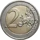 | Reversbeschreibung | A geographical map of Western Europe spans the outer ring and inner core on the right side of the coin. The inscription 2 EURO is superimposed over the map of Europe, with the numeral “2” located in an open field representing the eastern Atlantic Ocean. 12 stars are located on the right side of the outer ring, with six stars atop the map of Europe and six stars below it; six vertical stripes cut across the inner core of the coin, visually connecting the upper and lower star segments. |