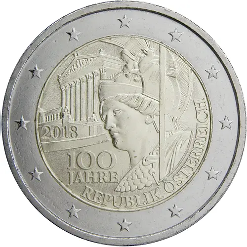 | Obverse lettering | REPUBLIK ÖSTERREICH 100 JAHRE 2018 (Translation: Republic of Austria 100 Years) |
