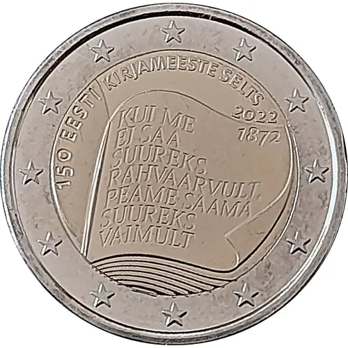 The new commemorative coin shows an open book with the words of the first president of the Society of Estonian Literati Jacob Hurt written on it: “Kui me ei saa suureks rahvaarvult, peame saama suureks vaimult”, meaning ‘If we cannot be a great nation in number, we must be great in spirit’, with the year 1872 that the Society of Estonian Literati was founded. The society was founded in Viljandi and then operated in Tartu, and it helped promote literature in Estonian and so indirectly raised the cultural level of the Estonian people. |