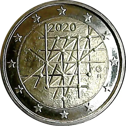 | Ön yüz açıklaması | The grid-like design represents the interaction between universities and society. At the top of the design, there is the year of issuance ‘2020’, at the right side the mintmark and underneath the mintmark is the indication of the issuing country ‘FI’. The coin’s outer ring depicts the 12 stars of the European flag. |